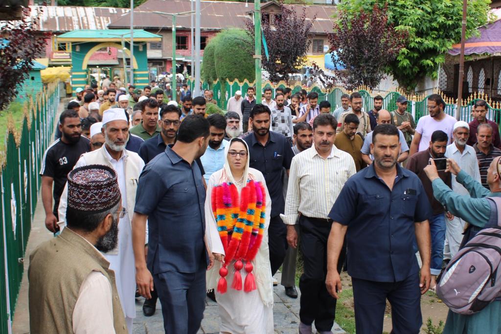 She paid obeisance at the ziyarat and prayed for the peace and prosperity of all. Dr Andrabi took stock of the facilities in the shrine and also assessed the management system in place there. She was accompanied by the magistrate of the Board and other officials too.