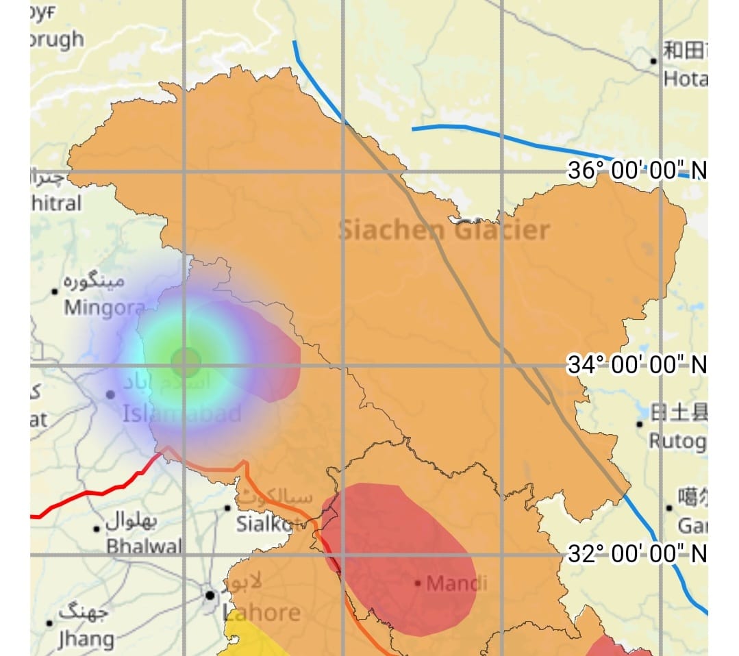 Jammu 18 July, 2023, Shaharbeen Times: A moderate earthquake measuring 3.8 on the Richter scale struck the region of Jammu and Kashmir, India. The earthquake occurred at 22:07:26 IST on July 17, 2023. The epicenter was located approximately 80 kilometers east of Katra, with a latitude of 33.05 and longitude of 75.79. The earthquake had a shallow depth of 5 kilometers. Local authorities are assessing the situation for any potential damages or casualties caused by the tremor.