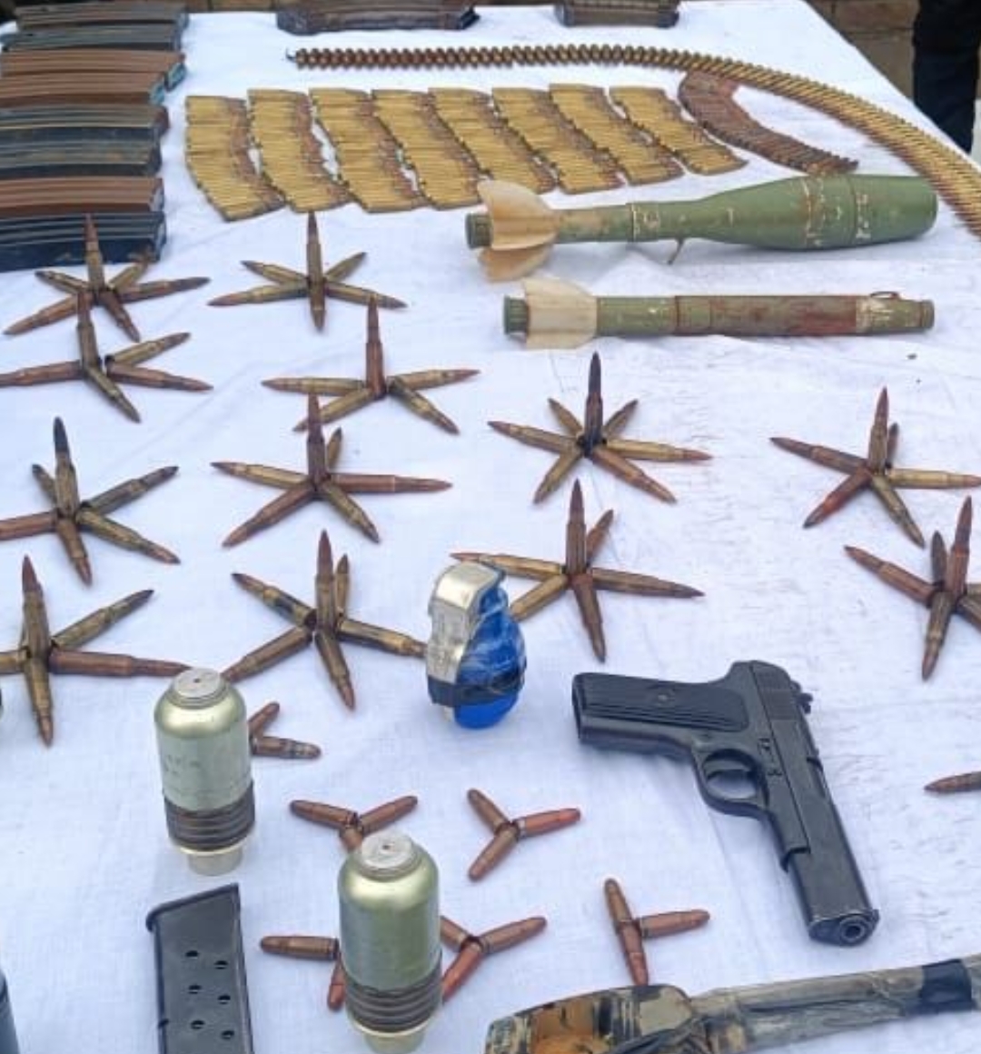 Official sources told the news agency—Kashmir News Observer (KNO) a search operation was launched in Mirhama village during which huge cache of arms and ammunition including six magazines, four grenades, pistol was recovered.