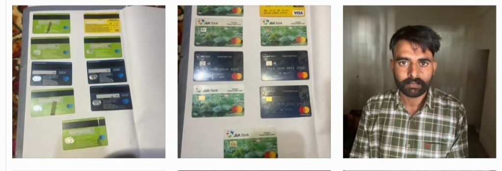 A team of police station Rajouri headed by PSI farah Jabeen under the supervision of SHO Rajouri Mohd showket and Dy SP Mudasir Hussain JKPS , overall supervision of SSP Rajouri Amritpal Singh IPS nabbed Mohd Rizwan s/o mohd luqman R/o saaj tehsil thana mandi Rajouri , 38500/- Atm card of the applicant with 8 other ATM cards has been recovered from his possession.