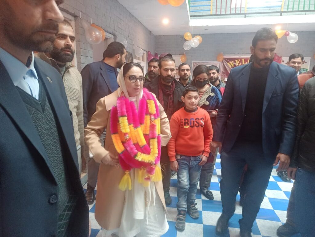 Chairperson of Jammu & Kashmir Waqf Board Dr Syed Darakhshan Andrabi inaugurated R P World School Campus at Abadpora Waterhail in Budgam today during a brief but grand event.  She was accompanied by SDM Khansahib Malik Tariq & Tehsildar Budgam Imtiyaz Ahmad among others. Dr Andrabi addressed the gathering after inaugurating the school. “In new peaceful Kashmir, education and economic development have become the thrust areas for everybody. We are now dreaming big and working for a bright future for our children. This school will provide a potent option for qualitative education in the area”, said Darakhshan Andrabi. She said that during past ten years, mega steps have been taken for boosting our educational system in the country. “Iconic higher education institutions have been set up in all parts of India including the UT of J&K. National Education Policy is the biggest educational reform which was done by Modi Sarkar after decades”, said Waqf Board Chairperson. She said that our children are now exposed to creativity and productivity in place of violence and hatred. “It is the responsibility of all of us to ensure that good humanist and nationalistic visions are shared with our brilliant students so that they are inspired to do good for the country and the world”, said Dr Darakhshan Andrabi. Waqf Chairperson was given a rousing welcome on her arrival in the area.