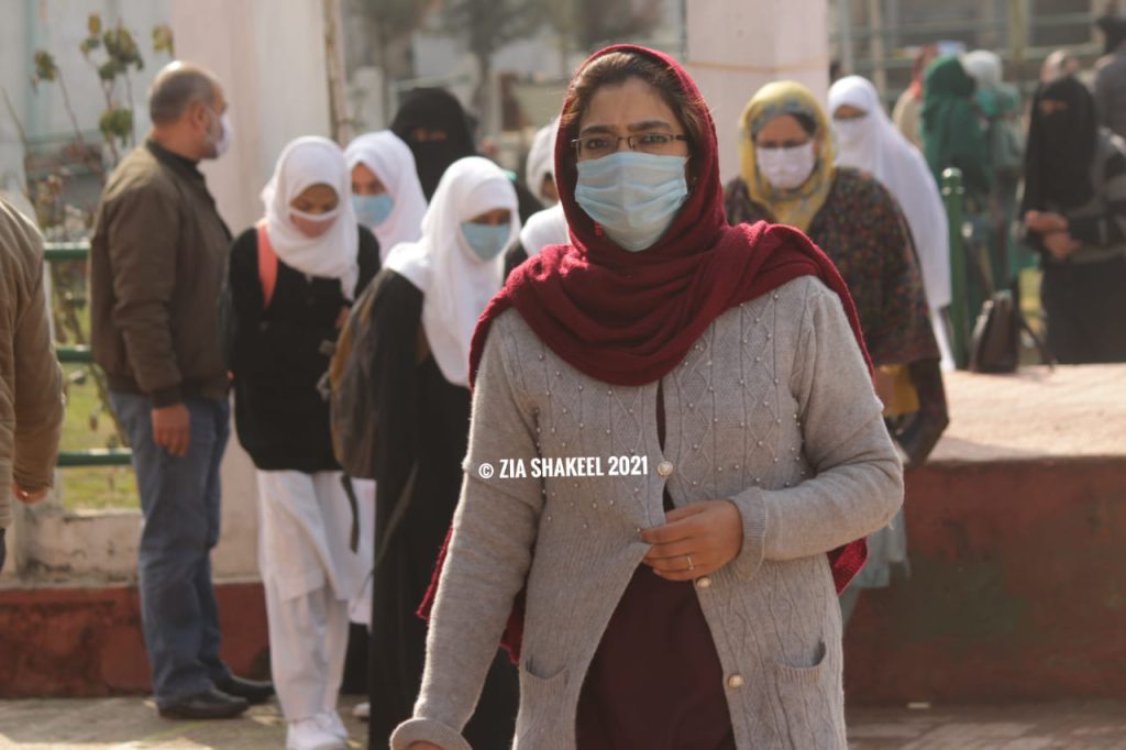 Srinagar, Mar 1 : Most of the students from 9th to 12th standard on Monday attended schools in Kashmir Valley amid COVID-19 protocol.
