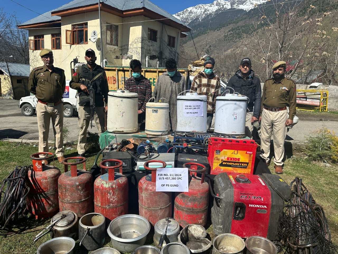 On 22/03/2024, Police Station Gund received a written complaint from a person namely Tajamul Hussain, owner of Hung Park Restaurant, stating therein that during intervening night of 21-22/03/2024, some unknown persons have broken locks and barged into his restaurant, and have stolen valuable items like Generator, Two Inverter Units, Transformer, Coffee Machine, Griller/Toaster, Gas Stove, Gas Cylinders, Utensils, Electric Cables and damaged CCTV Cameras and other items.
