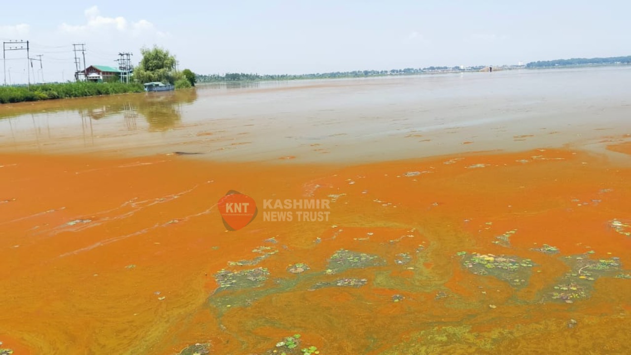Srinagar, June 15, KNT: A vast stretch of Dal Lake has turned brick red due to the presence of rampant red algae. The blooming of red algae speaks volumes about the ineffective de-weeding mechanism and strategy of the Lakes and Conservation Management Authority (LCMA), the erstwhile Lakes and Waterways Development Authority (LAWDA).