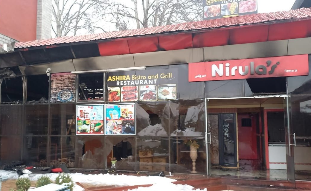 Srinagar, Jan 10 (KNO): A two storey restaurant Nirulas at Sangarmal city center in Srinagar caught fire on Sunday late night.