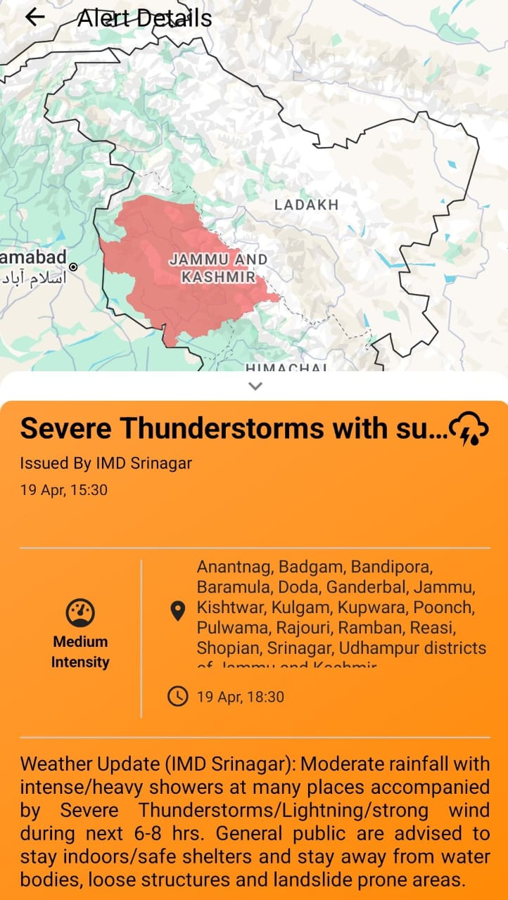 Nowcast update J&K @ 5 PM: Moderate rain with intense showers accompained with moderate to severe thunderstorm/Lightning/Gusty winds at many places of J&K till nxt 6-8 hrs.